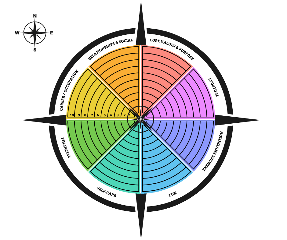It is difficult to pursue your heart’s quest if you are unclear about where you are and what you want. Get clarity by completing this assessment. How do you feel about these areas of your life? Rate your satisfaction on a scale from 1 to 10. 1 = very unsatisfied (center arc), 5 = neutral (middle arc) , 10 = very satisfied (outer arc). Shade in each arc to form a circle. What areas are calling for your attention? What would you like to do about it?